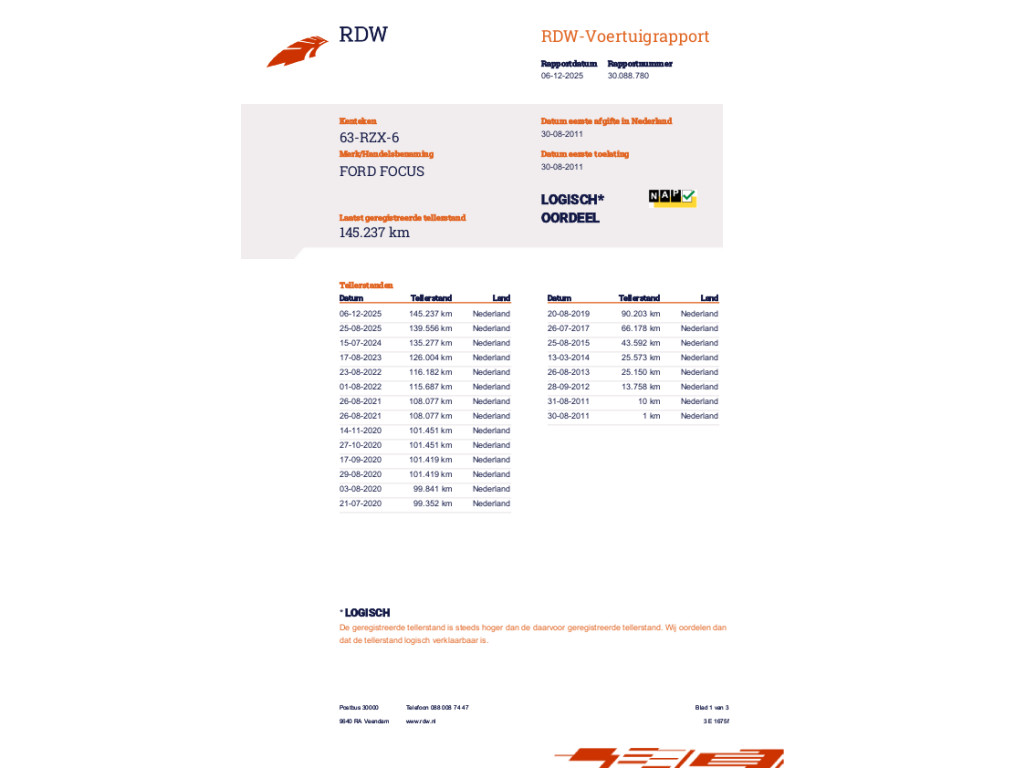 | Transmissie Handgeschakeld | Model Focus | Bouwjaar 30-08-2011 | Kilometerstand 145.237 KM |