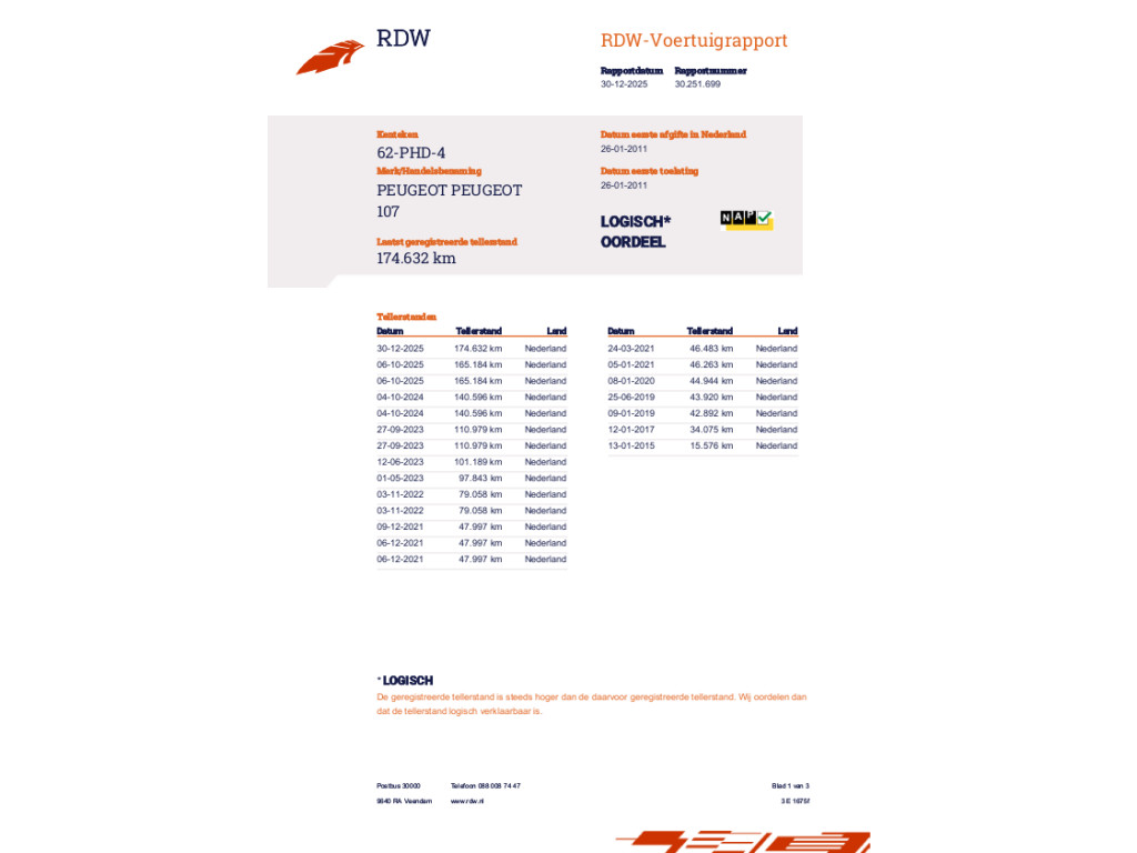 | Transmissie Handgeschakeld | Model 107 | Bouwjaar 26-01-2011 | Kilometerstand 174.632 KM |