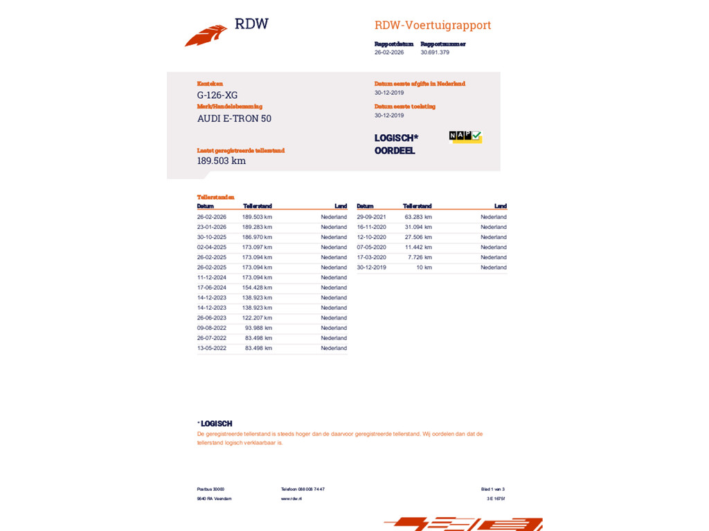 | Transmissie Automaat | Model e-tron | Bouwjaar 30-12-2019 | Kilometerstand 189.503 KM |