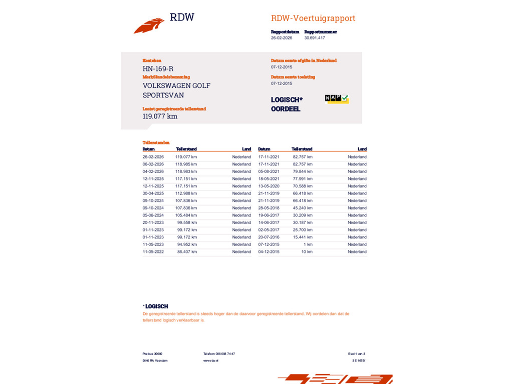 | Transmissie Handgeschakeld | Model Golf Sportsvan | Bouwjaar 07-12-2015 | Kilometerstand 119.077 KM |