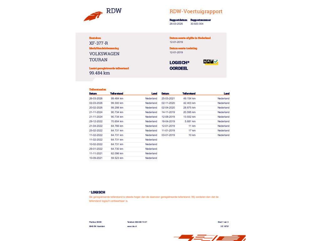 | Transmissie Handgeschakeld | Model Touran | Bouwjaar 12-01-2019 | Kilometerstand 99.555 KM |